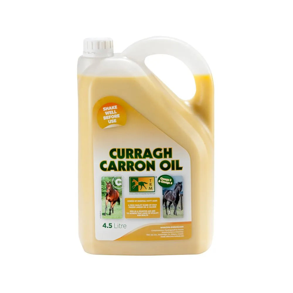 Extremely popular Omega-enriched digestion aid. Curragh Carron Oil is a balanced blend of essential fatty acids (EFAs) derived from a high quality, cold pressed Linseed Oil, fortified with Calcium Hydroxide. The EFAís Omega 3 and Omega 6 are both critical for health and have important structural and functional roles in the body. In particular, the conversion products from the omega 3 fatty acid alpha-linolenic include eicosapentaenoic Acid (EPA) and docosahexaenoic Acid (DHA). Research has shown that providing EPA and DHA in the diet reduces inflammatory responses and assists in the maintenance of a healthy circulatory system. Feed 60ml/day.